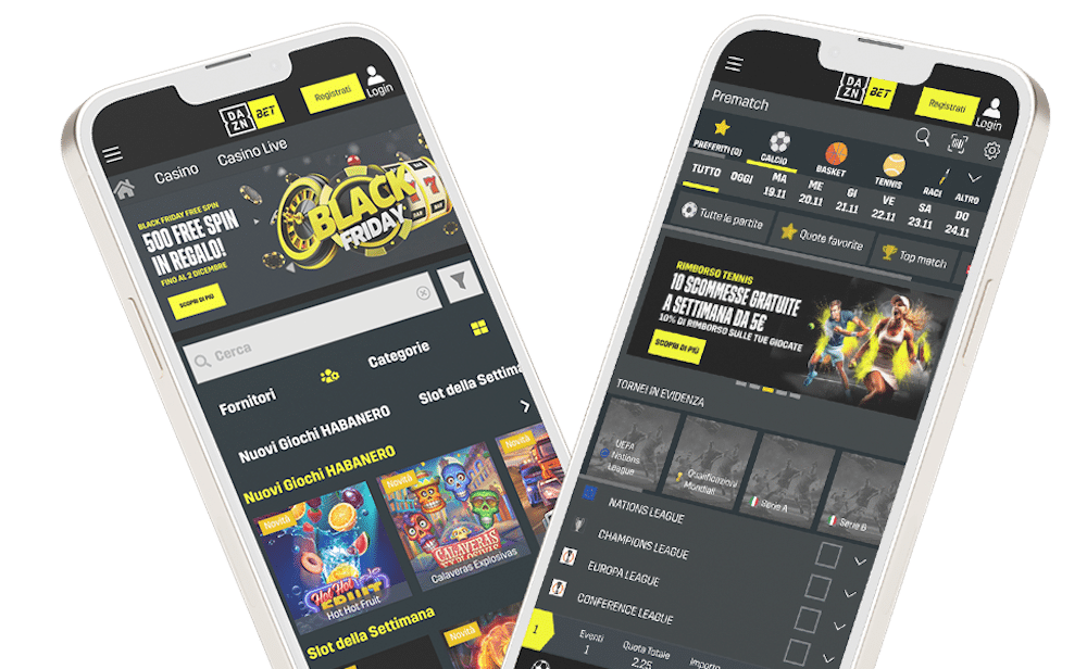 Per vivere una vera e nuova identità del gioco da mobile, è possibile scaricare e installare la DAZN Bet app. Sia con dispositivi iOS e Android puoi vivere un’esperienza immersiva e unica, rendendo ancora più accessibile il mondo di DAZN.