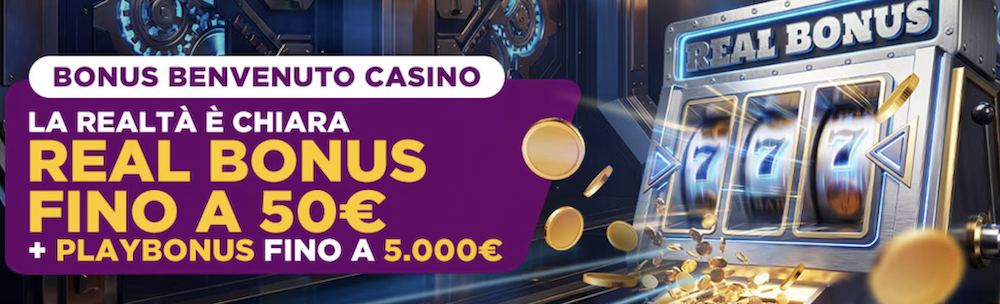 - 20% del primo deposito fino a 50€ in Real Bonus;