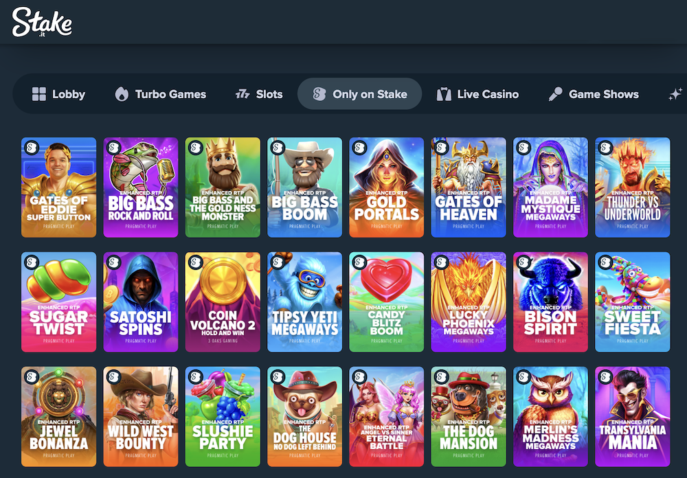 La piattaforma collabora con diversi provider internazionali, in particolare con i grandi nomi di Pragmatic, Nolimit City, NetEnt, Relax Gaming, Red Tiger, Playson, Amusnet, Evolution, Octavian Gaming e tantissimi altri. La varietà di fornitori è davvero ampia, in modo da introdurre i giochi più popolari, soprattutto per quanto riguarda le slot a tema e i tavoli con dealer dal vivo. E in tutto questo Stake riesce a combinare titoli tradizionali con esperienze innovative, che includono anche giochi crash e instant win.